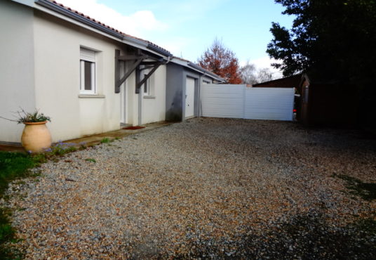 DANS QUARTIER CALME, PAVILLON DE PLAIN PIED TYPE 3 DE 62M² MITOYENNE D UN COTE, COMPRENANT ENTREE, SEJOUR AVEC CUISINE OUVERTE 30M², DEGAGEMENT, SDE AVEC WC, 2 CHAMBRES, TERRASSE PLEIN SUD, GARAGE UNE PLACE SUR PARCELLE DE 300M² ENVIRON.